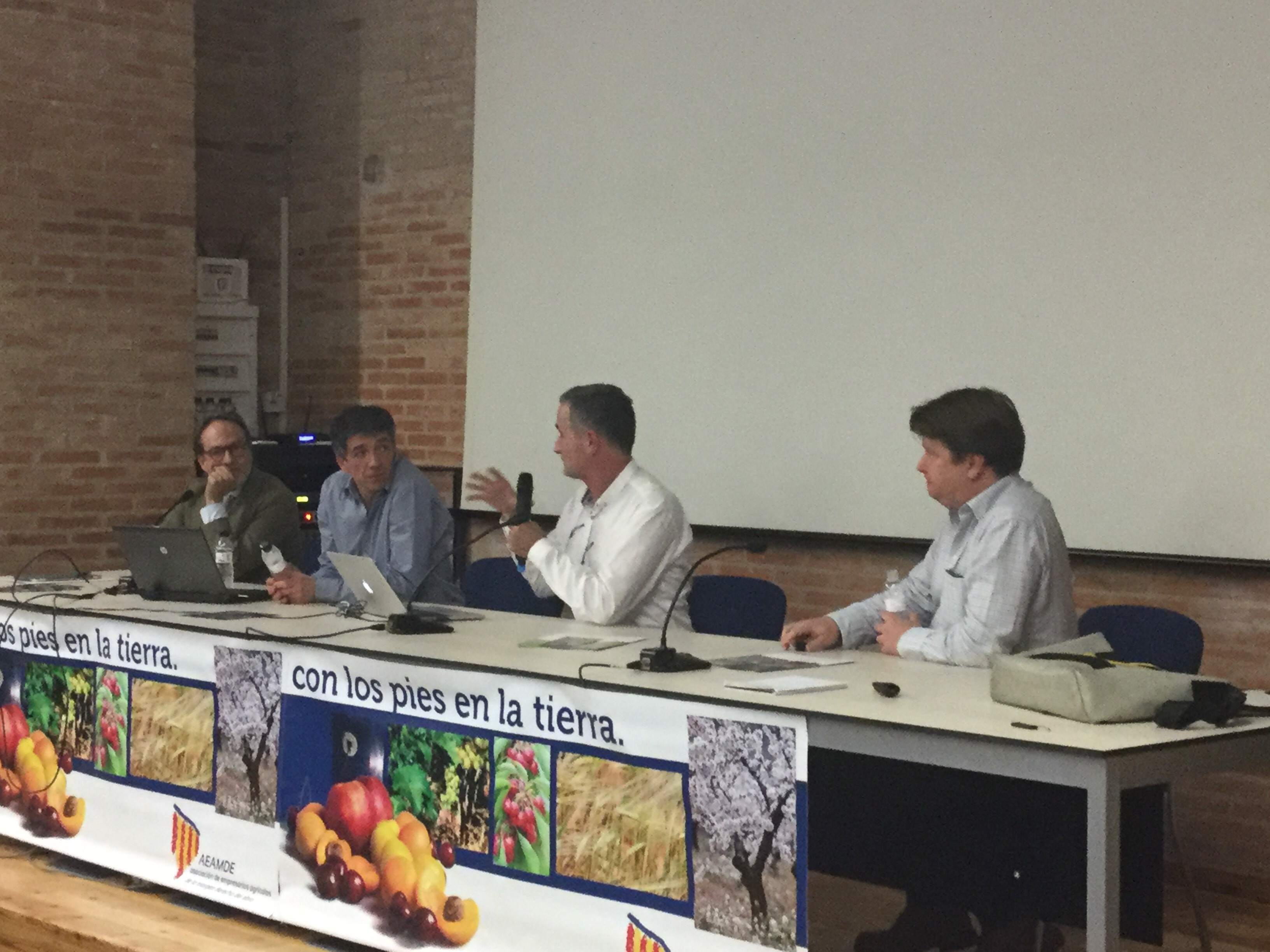 En la tercera de las intervenciones, Jesús Pardo, de FACA ha ilustrado a los asistentes en materia de «obligaciones para las empresas agrarias». Desde los residuos peligrosos, pasando por la normativa en aplicación de fitosanitarios o la necesidad del cumplimiento de royalties sobre material vegetal, hasta la aplicable para zonas vulnerables a nitratos. Jesus ha ofrecido una panorámica general en la que ha incluído las obligaciones genéricas además de las más específicas para empresas agrarias.La mañana ha finalizado con una intervención a cargo de Daniel Repollés, responsable de negocio agrario de Bantierra en la que realizó un repaso de las diferentes líneas de financiación existentes en el mercado para acometer las inversiones en el sector agrario. Los planes ICO, planes públicos de financiación para inversiones de desarrollo, internacionales o financiación a innovación tecnológica; el SAECA, entidad estatal de avales, para avalar al sector agrario; CDTI, del Ministerio de Economía y Competitividad, con sus líneas de investigación o inversión innovadora; ENISA, del Ministerio de Industria, como inversiones a la innovación y aplicación de la investigación han centrado la gran parte de su intervención; FENACORE, federaciones de comunidades nacionales de regantes, que aportan financiación también a agricultores además de comunidades de regates; y por último la financiación propia de la casa.